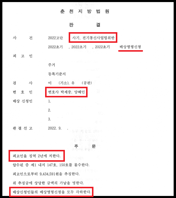 [형사] '보이스피싱 사기' - '감형' 성공사례 페이지 정보 작성자 강일 댓글 0건 조회 2,110회 작성일 23-03-16 11:30 본문 <1심 판결 등본> <법률사무소 강일 구성원> <형사법 전문분야 등록증서> 목록 이전글[가사] '상속한정승인' 수리 + '배당절차' 완수 사례 23.03.27 다음글[민사] 무단 점유 토지 '인도 청구' 및 '부당이득 반환청구' 성공사례 23.03.07